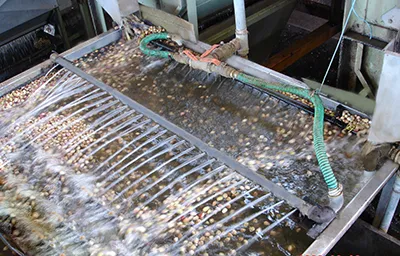 The Flotation Tank is the next essential step after hulling in pistachio processing. In this stage, hulled pistachios are placed into a water tank where natural density differences help separate quality levels. Empty shells and defective nuts float to the surface, while fully developed, heavier pistachios sink. This efficient sorting method improves overall batch quality, removes lightweight or unfilled nuts, and ensures that only premium, well-filled pistachios proceed to drying and final grading; a crucial step for maintaining export standards.